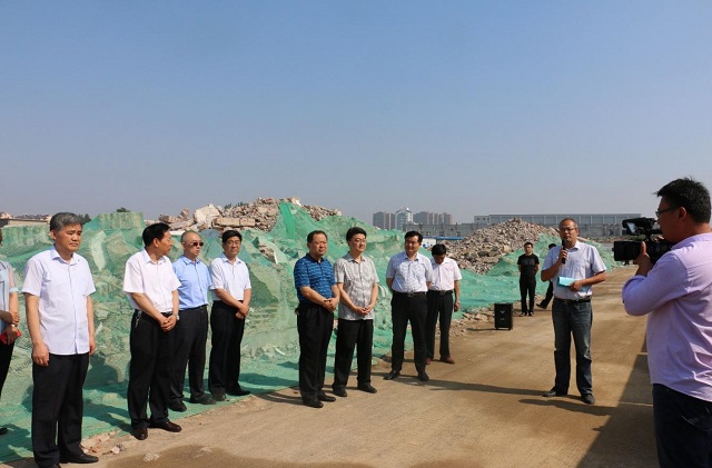 上圖為羅莊區(qū)人大常委會主任魏九成一行參觀集團創(chuàng)新產(chǎn)業(yè)園施工現(xiàn)場時的情景