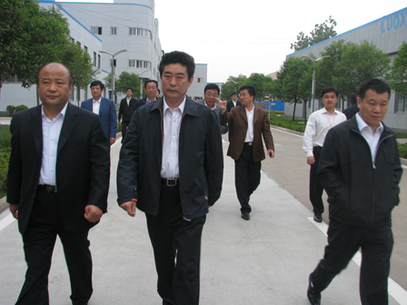 上圖為濱州市黨政考察團(tuán)一行在臨沂市委副書記、市長張少軍(前排左一)陪同下參觀公司廠區(qū)