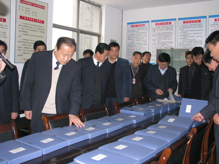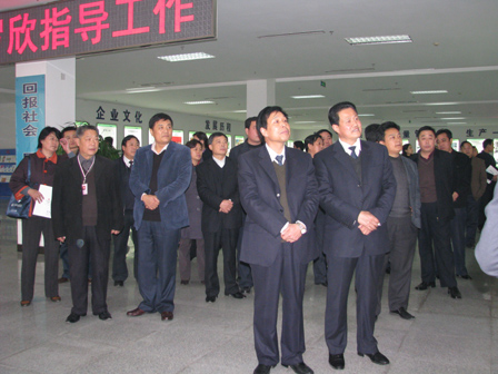上圖為山東省總工會民主管理部部長侯國華(前排左一)、臨沂市委副秘書長、機要局局長溫希森(前排左二)、臨沂市總工會副主席張賢德(前排左三)等領導參觀公司工會建設工作時的情景