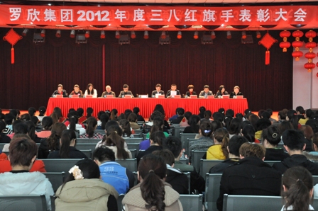 2013年3月8日,公司在管理中心四樓會議室隆重舉行了“羅欣集團2012年度三八紅旗手表彰大會”,集團領導及全體女職工參加了此次表彰大會,工會主席、副總經理李明先生宣讀了“關于表彰2012年度‘三八紅旗手’的決定”,董玉媚等12名優秀女職工受到表彰。