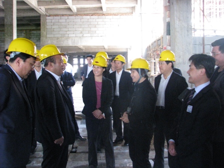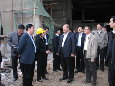上圖為公司總經理李明華(左二)在項目建設現場向市委書記、市人大常委會主任張少軍(前排右二)匯報項目建設情況。