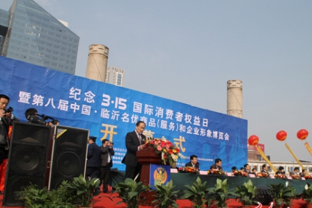 上圖為臨沂市紀(jì)念3.15國(guó)際消費(fèi)者權(quán)益日暨第八屆中國(guó)臨沂名優(yōu)商品(服務(wù))博覽會(huì)開(kāi)幕式