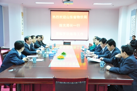 上圖為省物價局局長陳充(左四)一行參觀公司展廳時的情景上圖為省物價局局長陳充一行在公司座談時的情景