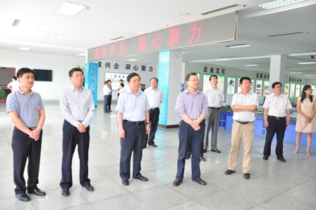 上圖為梁文躍副主任(前排左四)一行參觀(guān)公司展廳的場(chǎng)景